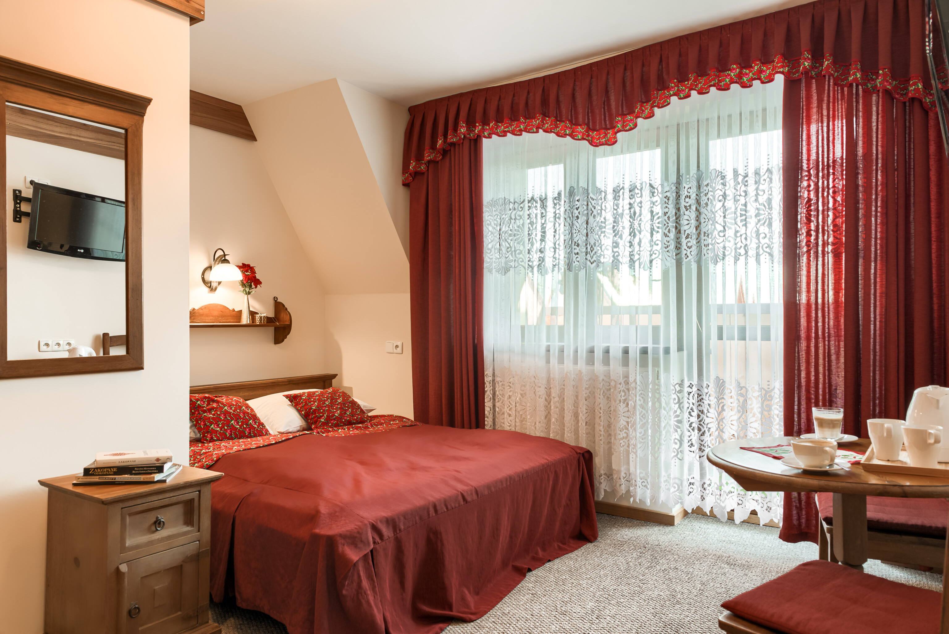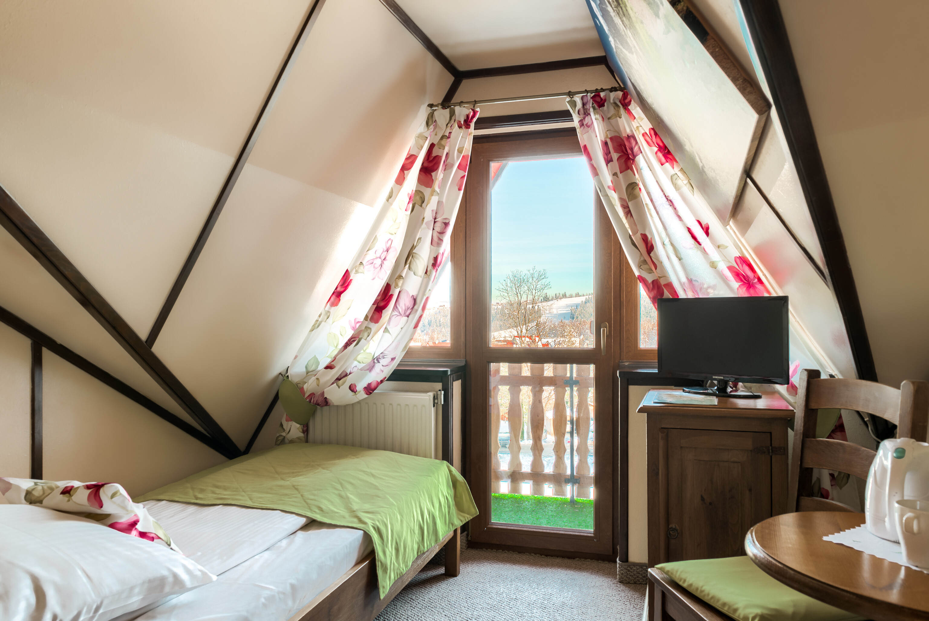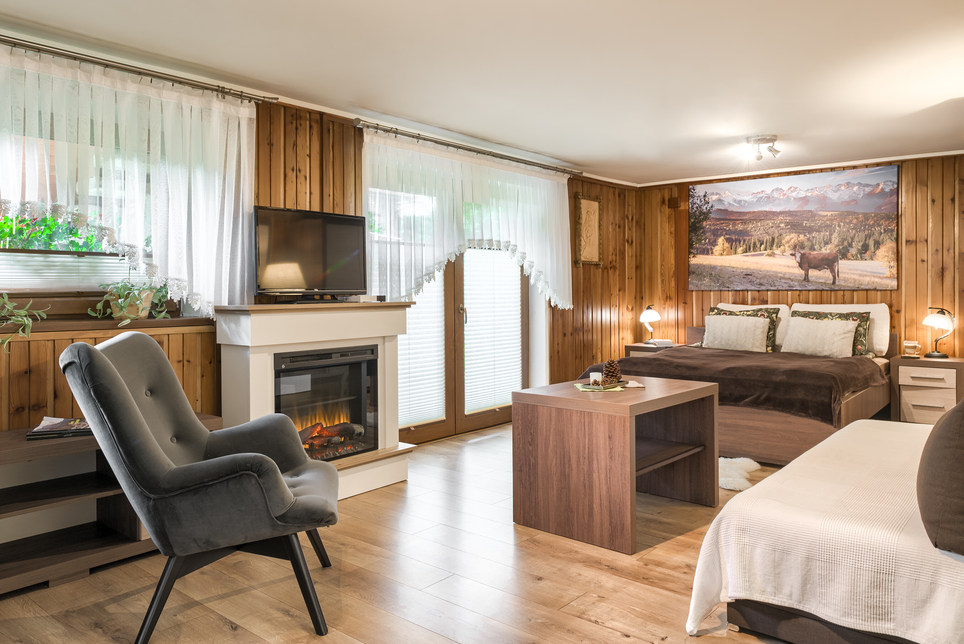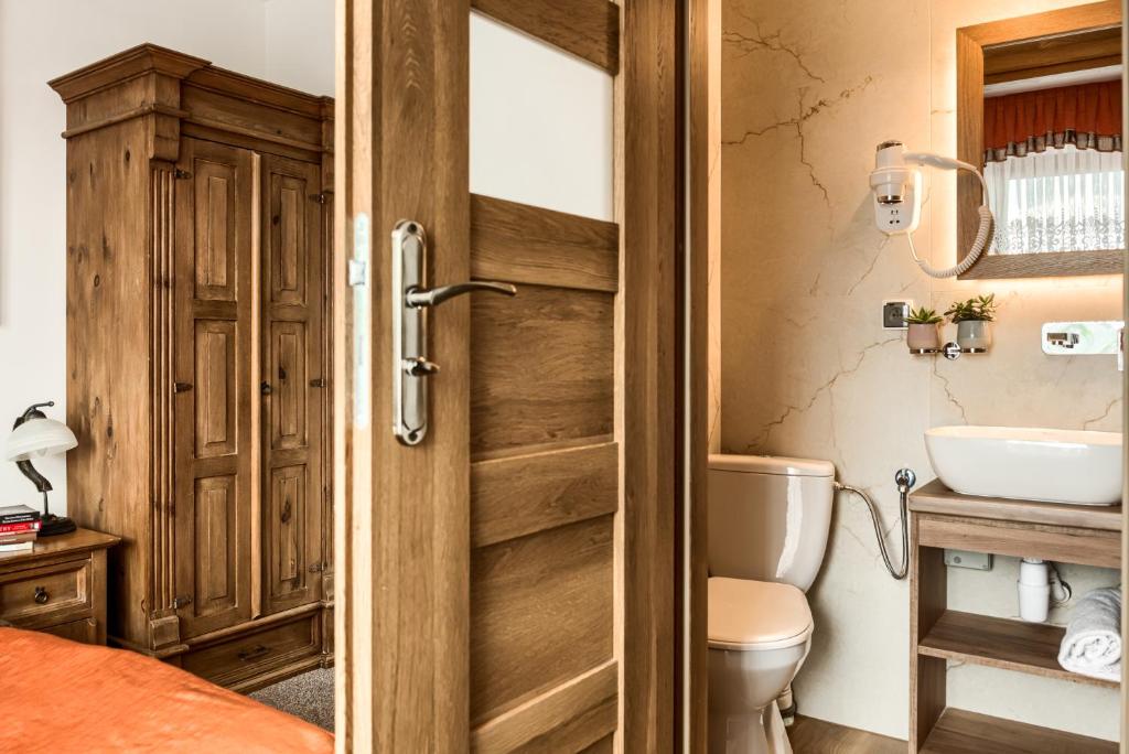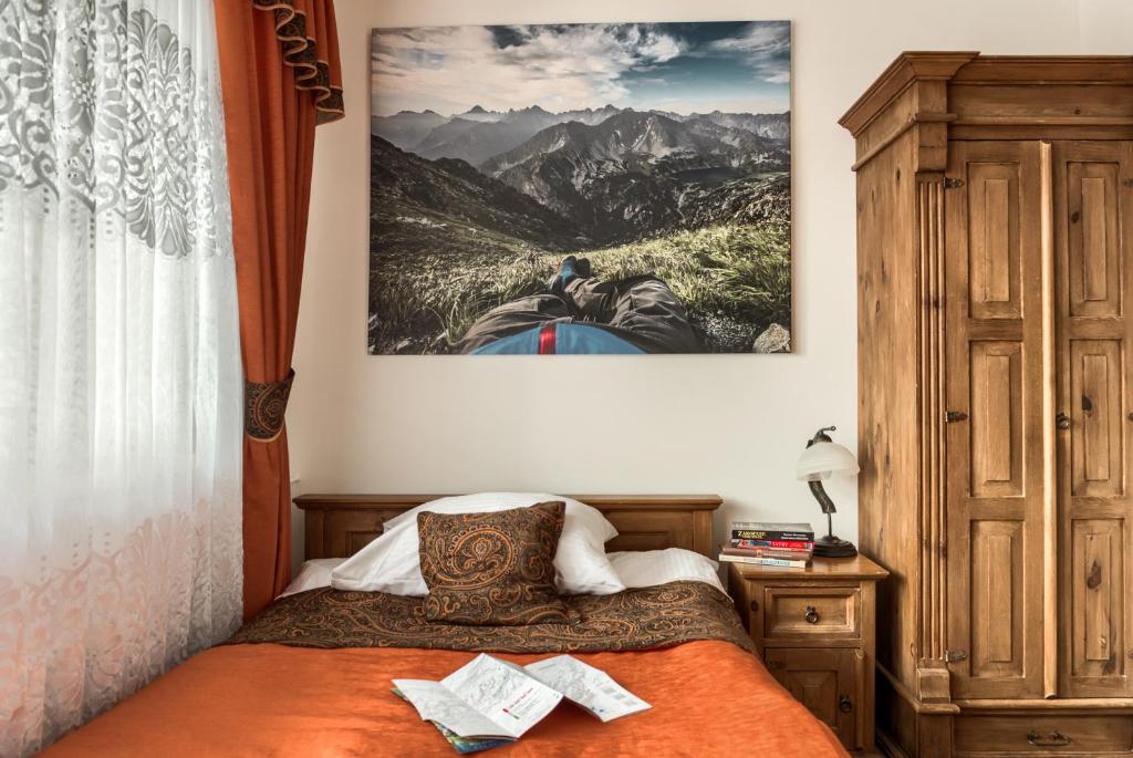 Jako tradycyjna rodzina góralska pragniemy, aby Goście czuli się u nas przytulnie, komfortowo i swobodnie. Z tego względu pokoje urządzone zostały typowo w stylu regionalnym przy zachowaniu nowoczesnych trendów wystroju wnętrz. Subtelne elementy folklorystyczne oraz obrazy górskich pejzaży na ścianach mają oddać charakter tego miejsca i nasze przywiązanie do niego. Jednocześnie ciepłe barwy i solidne, pięknie wykonane drewniane meble pozwolą na idealny wypoczynek w przytulnym klimacie. Nasi Goście mają możliwość rezerwacji samego pokoju lub pokoju ze śniadaniem.