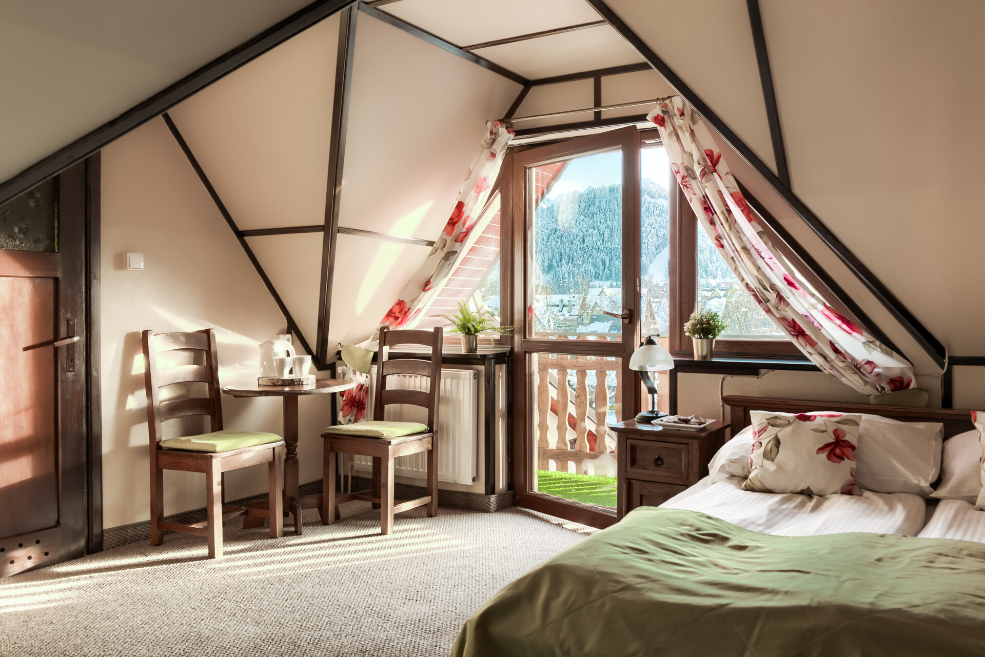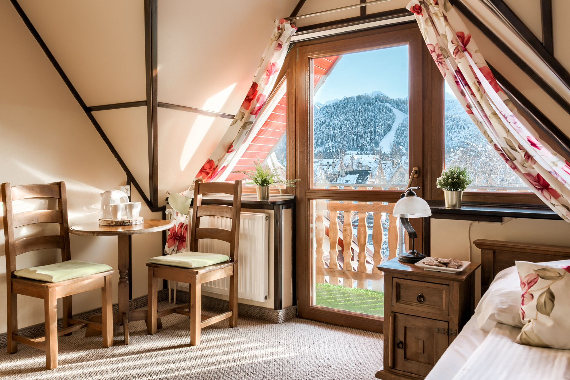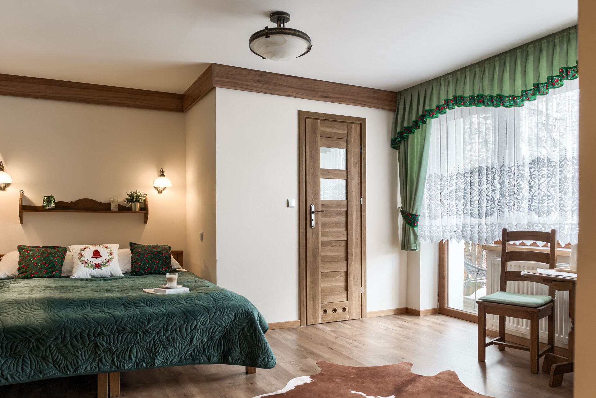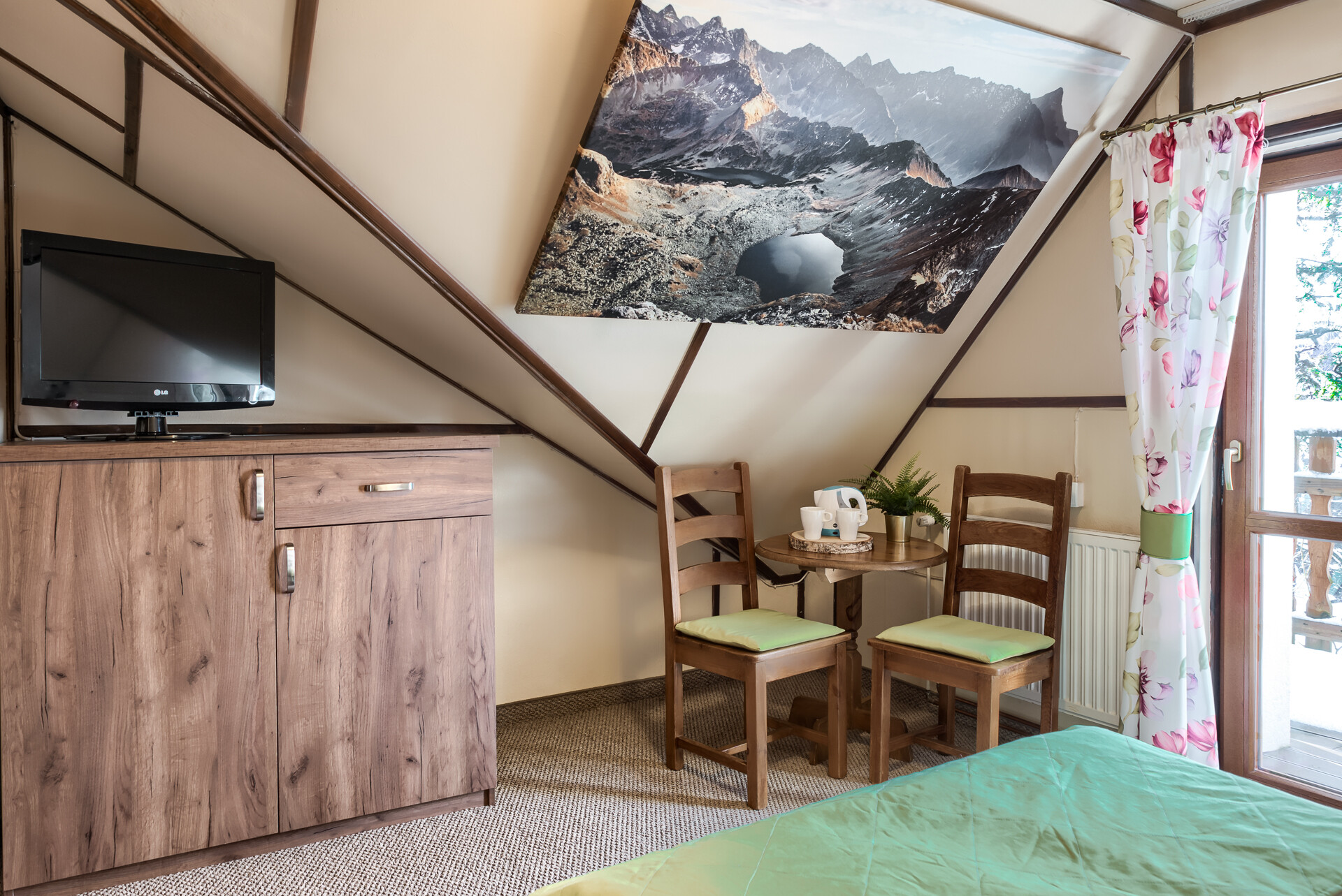 Jako tradycyjna rodzina góralska pragniemy, aby Goście czuli się u nas przytulnie, komfortowo i swobodnie. Z tego względu pokoje urządzone zostały typowo w stylu regionalnym przy zachowaniu nowoczesnych trendów wystroju wnętrz. Subtelne elementy folklorystyczne oraz obrazy górskich pejzaży na ścianach mają oddać charakter tego miejsca i nasze przywiązanie do niego. Jednocześnie ciepłe barwy i solidne, pięknie wykonane drewniane meble pozwolą na idealny wypoczynek w przytulnym klimacie. Nasi Goście mają możliwość rezerwacji samego pokoju lub pokoju ze śniadaniem.